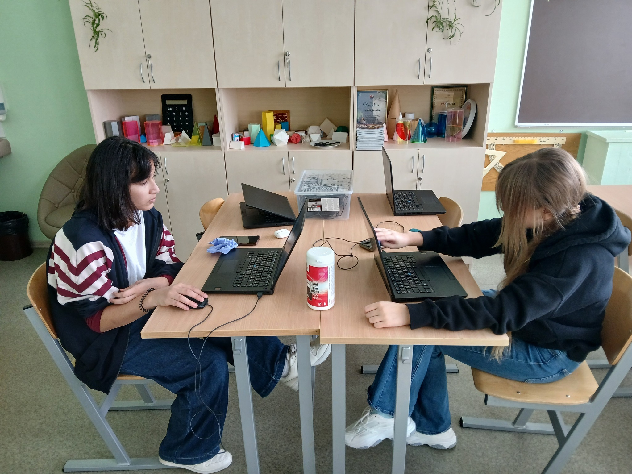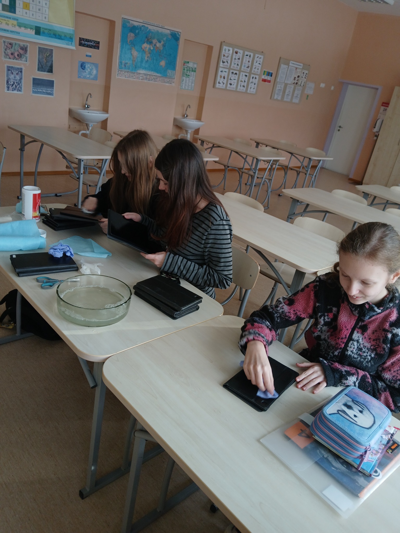 puhastasime kooli sülearvutid ja tahvelarvutid mittevajalikust digiprügist ning hoolitsesime ka seadmete välise puhtuse eest — eemaldasime tolmu ja plekid.