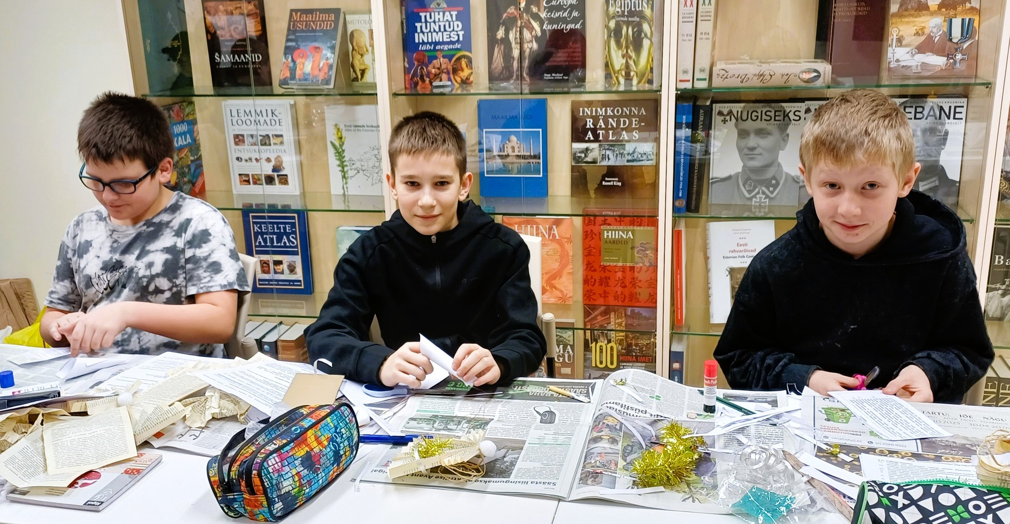 Работы художницы произвели на ребят и их классного руководителя огромное впечатление, вдохновив на создание собственных творческих изделий. В тёплой и дружеской атмосфере школьники вместе с классным руководителем и директором библиотеки мастерили рождественские украшения для своей школы, которыми украсили школьный коридор.